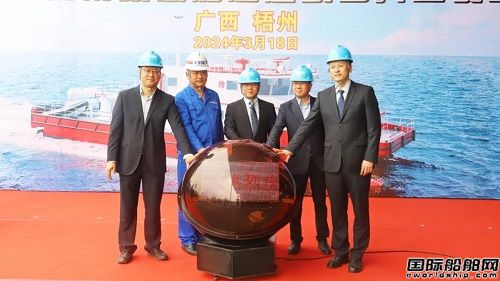 3月18日,中國船舶集團廣西造船有限公司所屬中船桂江造船有限公司建造的澳門海關消防救援船在梧州舉行開工儀式。澳門海關黃志勇處長,澳門海事及水務局胡俊業處長,中船廣西黨委書記、董事長歐傳杰,副總經理曾令強,副總經理兼桂船公司黨委書記、執行董事談衛,中國船舶集團廣州公司副總經理周慶,武漢船舶設計研究院副院長孫曉暉以及相關建造設計方代表出席開工儀式。