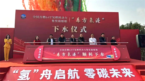 12月18日,浙江禾東船業科技股份有限公司為浙江氫能產業發展股份有限公司建造的全國首艘內河64標箱氫燃料電池動力集裝箱船舶“東方氫港”在嘉興成功下水。