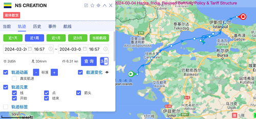 ▲“NS Creation”輪軌跡,圖源:船視寶