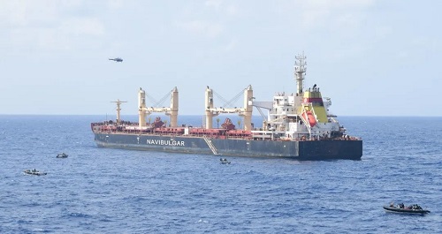 3月15日,印度海軍遠程海上巡邏隊報告,在印度洋索馬里以東約 260 海里處攔截到了正在航行的“Ruen”輪。經過無人機、海軍艦艇和海軍突擊隊長達 40 小時的行動,“Ruen”輪上的 35 名海盜全部投降,印度海軍已檢查該船是否存在非法武器、彈藥和違禁品。