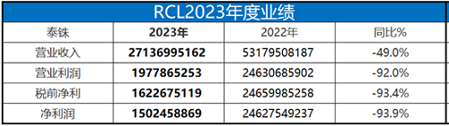 航運(yùn)界網(wǎng)消息,泰國宏海箱運(yùn)(RCL)日前發(fā)布2023年業(yè)績。