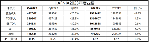 Hafnia公布2023年第四季度和全年財(cái)報(bào)
