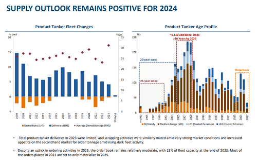 2023年是一個(gè)充滿重大波動(dòng)和意外“中斷”的年份。復(fù)雜的地緣政治局勢,俄烏沖突和中東的沖突,導(dǎo)致了整個(gè)能源市場的動(dòng)蕩。紅海危機(jī)造成國際航運(yùn)混亂,他仍對2024年成品油輪的前景持樂觀態(tài)度。