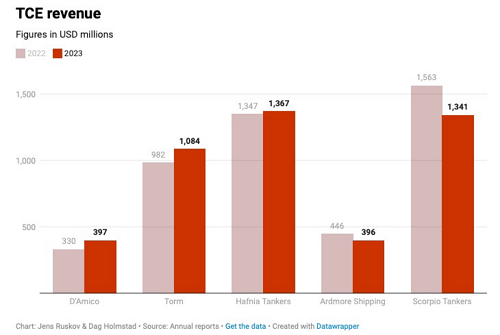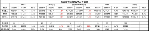 總體而言,這5家領先的成品油輪運營商在2023年凈利潤達到創紀錄的23億美元,較2022年高3.6%。