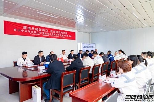 儀式結束后,舟山中遠海運重工、中建港航局集團、中船第九設計研究、上海振南工程咨詢監理等四家單位聯合召開四號船塢工程建設項目廉潔共建會。