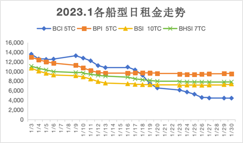 波羅的海國際航運公會(BIMCO)在最新2023年1月干散貨航運市場概況與展望報告中,繼續下調了對于2024年全球干散貨需求量的預期。