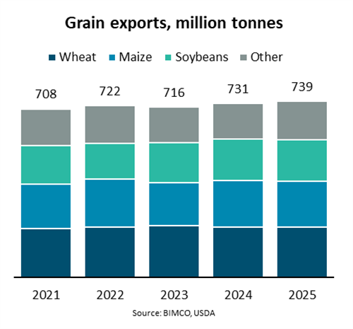 除減碳外,航運業者認為今年干散貨市場走勢將直接受到地緣政治及兩大運河通行動態變化的影響。