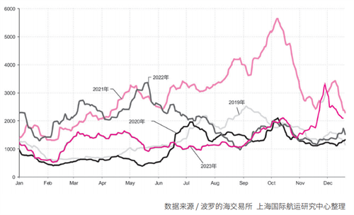 整體來(lái)看,2023年BDI指數(shù)前期窄幅波動(dòng),年底市場(chǎng)多重情緒帶動(dòng)翹尾明顯。