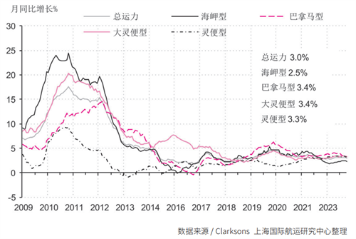 2009-2023年全球干散貨船隊(duì)運(yùn)力增速