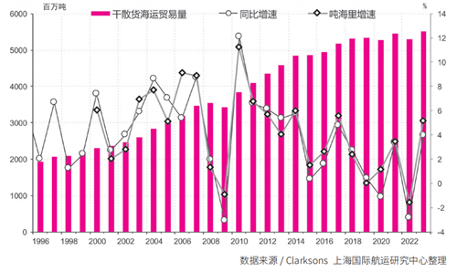 1996-2023年全球干散貨海運(yùn)貿(mào)易量