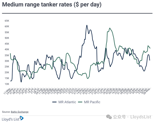 本月迄今為止,運送成品油往返于大西洋盆地的中程油輪日均運價為3.11萬美元。