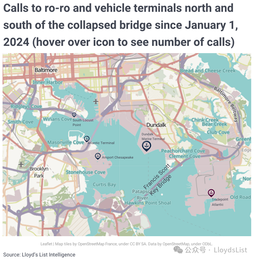 盡管Tradepoint Atlantic碼頭仍可使用,但與倒塌大橋北部的車輛和滾裝船碼頭相比,該碼頭接納的車輛運(yùn)輸船較少。