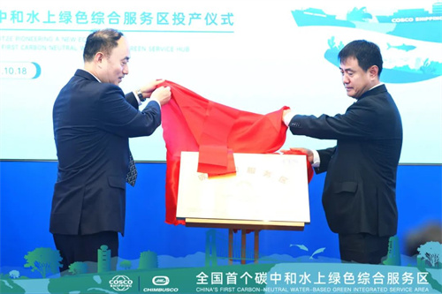 投產儀式上,中國船級社質量認證有限公司(ccs),為江陰水上綠色綜合服務區頒發了,碳中和認證證書,該認證標志著服務區在運營過程中