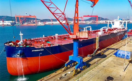 11月10日,中船北海造船在青島西海岸新區向比利時船東交付首艘31.9萬噸氨預留超大型原油船,成為5艘系列訂單中的首制船。