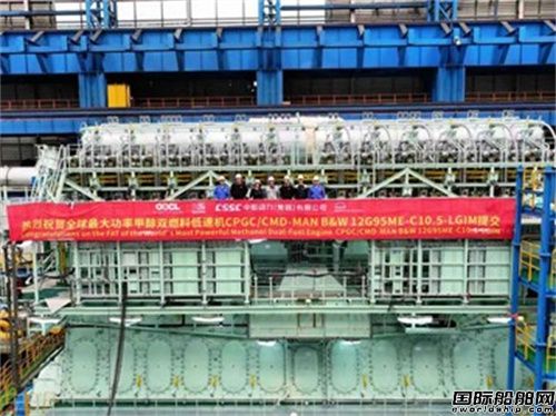 2025年5月15日,中船集團下屬中船動力(集團)有限公司與MAN Energy Solutions(MAN ES)聯合舉辦的 CPGC CMD-MAN B&W 12G95ME-C10 5-LGIM-EGRTC 甲醇發動機 FAT 交驗儀式在中船動力下屬中船三井成功舉行。...