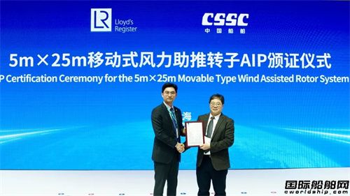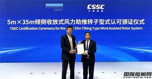 權威認證成為“船用可移動/傾倒收放式風力助推產品”有力背書,本次海事展會上,兩大國際知名船級社挪威船級社(DNV)、英國勞氏船級社(LR)分別頒發轉子型式認可設計證書(TADC)和轉子原理性認可證書(AIP),為公司風力助推產品走向國際頒布了綠色“通行證”。