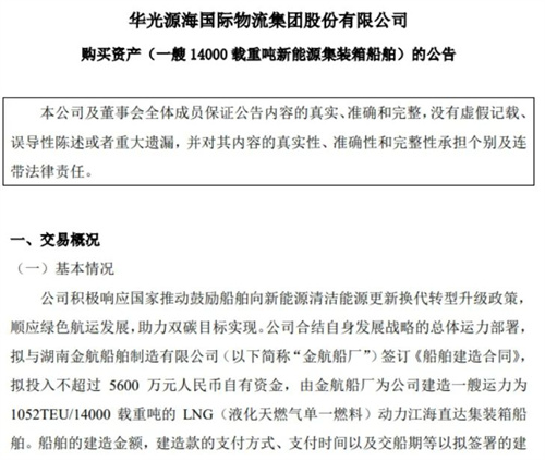 近日,華光源海國際物流集團股份有限公司宣布訂造新能源LNG動力集裝箱船。