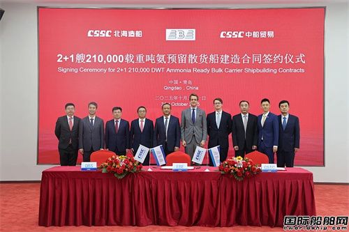 10月31日,北海造船聯(lián)合中船貿易與比利時航運公司EBE成功簽署2+1艘21萬噸氨預留散貨船建造合同。此次合作是EBE公司首次在中國下單造船,體現(xiàn)了國際市場對中船北海造船船舶建造實力的高度認可。