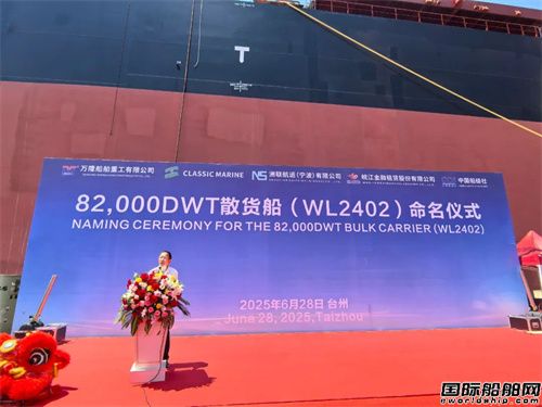 6月28日,萬隆船舶重工有限公司為皖江金租、洲聯航運(寧波)有限公司建造的82000噸散貨船“經典夜光”輪(WL2402)在浙江臺州舉行交船暨命名儀式。