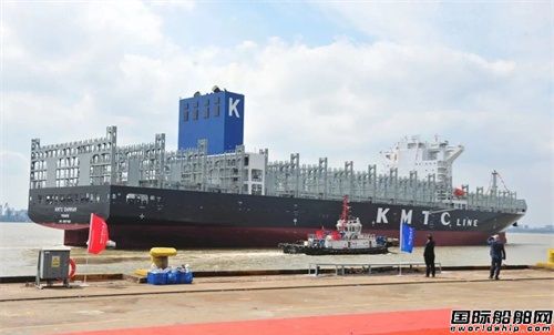 9月22日中午,揚(yáng)子江船業(yè)集團(tuán)新?lián)P子造船為Lepta船東建造的首制8000TEU集裝箱船“KMTC DAMMAM”解纜離開船廠碼頭,交付投入運(yùn)營。