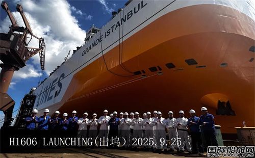 9月25日,外高橋造船為Frontline公司建造的15.8萬噸蘇伊士型原油船H1585船和為Grimaldi公司建造的9000車位汽車運輸船H1606船順利出塢。外高橋造船總監李芝忠、Frontline船東、Grimaldi船東、ABS船級社、RINA船級社項目負責人及成員,以及船廠相關部門負責人參加出塢儀式。