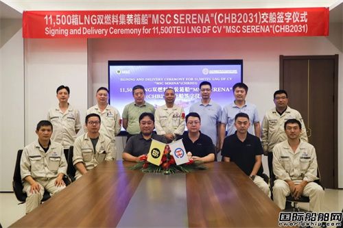 值得一提的是,9月24日14時(shí)28分,雙方已通過(guò)視頻連線(xiàn)方式簽署交船文件,“地中海·塞麗娜(MSC SERENA)”輪成功交付船東。