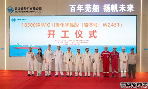 同日,在蕪湖造船廠先進的智能下料中心,RF Tankers 18500項目的首制船(W2451)舉行了隆重的開工儀式。隨著數控切割機點火并吐出第一批火花,標志著該項目的建造工作正式拉開帷幕。現場的項目團隊一致表示,將以此為新起點,秉承匠心精神,周密策劃、精細管理,全力將首制船打造為經得起市場檢驗的精品工程,不負船東與公司的重托。