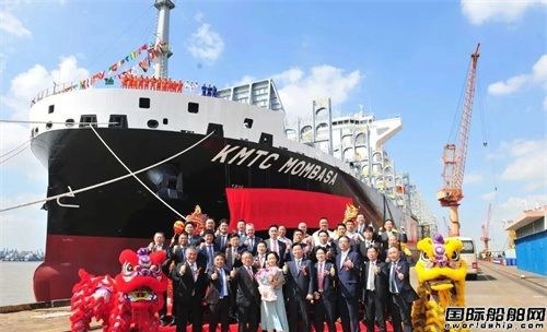 9月30日上午,揚(yáng)子江船業(yè)集團(tuán)新?lián)P子造船為L(zhǎng)epta船東建造的二艘8000TEU集裝箱船“KMTC MOMBASA”解纜離開(kāi)船廠碼頭,交付投入運(yùn)營(yíng)。