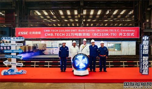 10月10日,中國船舶集團北海造船承建的新加坡EPS公司21萬噸LNG雙燃料散貨船項目60號船和比利時CMB.TECH公司21萬噸散貨船項目79號船在公司造船一區聯合廠房內舉行開工儀式。船東、船檢及公司各部門代表共同啟動開工水晶球,標志著項目正式進入開工建造階段。