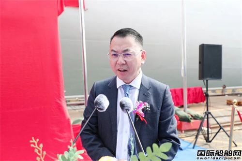 周旭輝在命名儀式上致辭道:“此次命名的這艘船是同系列船中的第三艘船。而這三艘船,每一艘都是‘獨家定制’。從增加LNG雙燃料、增加房間,到公共區域調整優化,廣船國際始終以 MSC 需求為核心,24 小時響應、全力攻堅,這份擔當背后,是廣船國際一直秉持的信念:‘己欲立而立人’。我們深信,唯有成就伙伴,才能共同成長。此次命名的這艘船,也是廣船國際向地中海航運交付的第十艘船,其中7艘是16000TEU集裝箱船。面向未來,廣船國際期盼與地中海航運開啟更多合作篇章。從綠色航運技術的深化突破,到智能船舶的創新探索,我們愿以更開放的姿態,與地中海航運及全球伙伴一道,讓‘各美其美,美美與共’的智慧,融入智能、低碳、可持續的航運新圖景。”