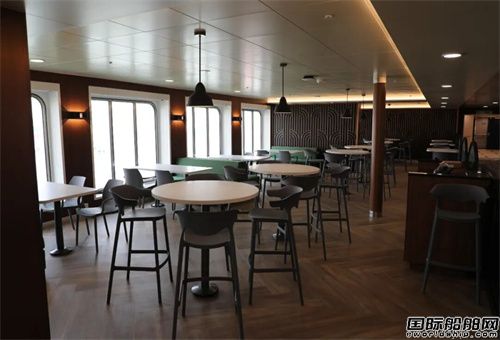 全船居住區噪聲低于55分貝(全速航行),公共區低于60分貝,滿足RINA “COMF-VIB-B”振動與“COMF-NOISE-B”噪聲舒適度標準。船底涂裝7200平方米新型有機硅防污漆,可降低燃油消耗與碳排放。另設隔離病房及防疫區,空調系統獲“BIOSAFE”生物安全入級符號。全船內裝材料實現100%國產化。