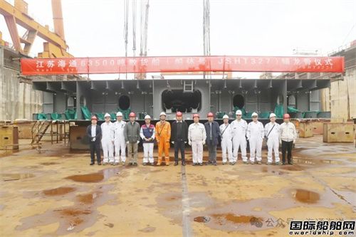 海通海洋一艘63500噸散貨船舉行鋪龍骨儀式
