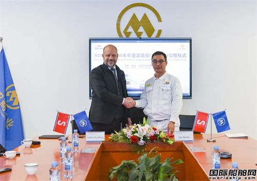 11月19日,招商工業(yè)威海船廠為瑞典渡船運(yùn)營商Stena Line建造的第二艘NewMax系列滾裝船“STENA CONNECTA”完工交付。船東和公司代表分別在項(xiàng)目交付文件上簽字。