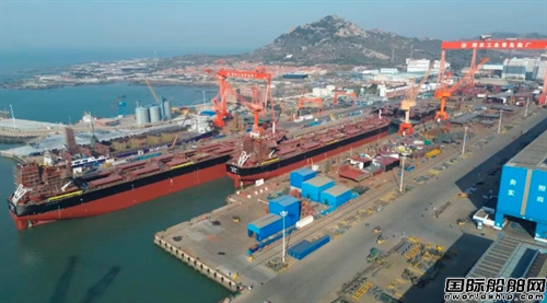招商工業青島船廠兩艘82000噸散貨船同日出塢