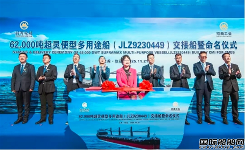 11月21日,招商工業金陵船廠為招商輪船建造的第三艘62000噸超靈便型多用途船“明簡”輪在江蘇儀征正式命名交付。