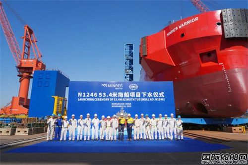 11月25日,廣東中遠海運重工D區碼頭,53 4米全回轉頂推拖船1 船N1246順著下水滑道緩緩進入下水駁,成功實現下水作業。船東、船檢代表及相關部門負責人、項目組成員齊聚現場,共同見證這一時刻。...