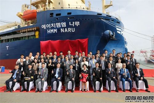 11月27日,黃埔文沖為韓國最大航運(yùn)公司韓新海運(yùn)(HMM)建造的38000噸多功能重吊船2號(hào)船“HMM NARU”輪,在龍穴廠區(qū)舉行命名儀式。