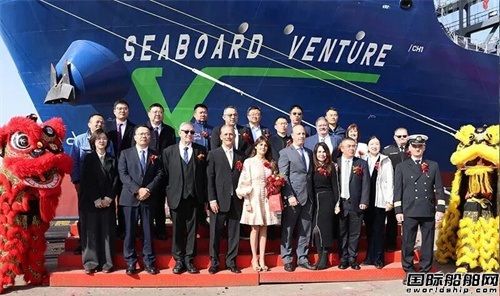 2025年11月28日上午,三福船舶為美國船東建造的一艘3500TEU雙燃料(LNG+MGO)集裝箱船“SEABOARD VENTURE”號在公司碼頭舉行了盛大的交船命名儀式。船東代表、DNV船級社代表、恒豐銀行代表及三福船舶代表等出席命名儀式,共同見證這一歷史性時刻。