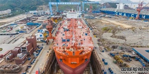 舟山中遠(yuǎn)海運(yùn)重工第8艘穿梭油船順利上水