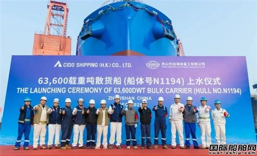 舟山中遠海運重工為CIDO建造63600噸散貨船上水