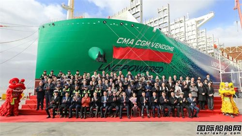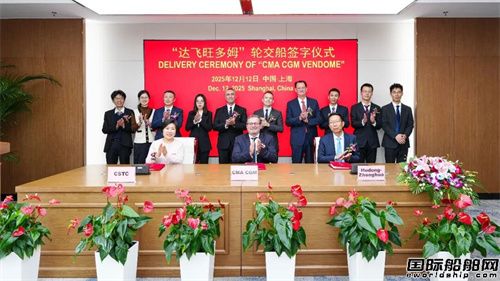 12月12日,滬東中華造船為法國達飛海運集團建造的全球最大24000TEU級LNG雙燃料集裝箱船“達飛旺多姆(CMA CGM VENDOME)”號(H1906A)提前8個半月命名交付,標志公司全面完成2025年生產(chǎn)經(jīng)營任務。同時這是滬東中華交付的第100艘大型集裝箱船,是公司榮光鐫刻的新里程碑,彰顯中國在全球造船領域的主導地位。