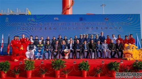 12月18日,天海防務(wù)全資子公司江蘇大津重工有限公司為H.P.Wegener公司建造的2#1064TEU集裝箱船“HERA”輪(DJHC6087)命名暨交付儀式在大津重工隆重舉行。船東H.P.Wegener公司代表、OSM監(jiān)造團隊、DNV船級社代表及揚子金控合作伙伴等各方嘉賓齊聚現(xiàn)場,共同見證這一重要時刻。