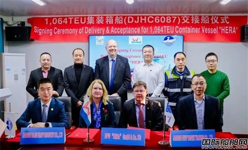 作為大津重工重點產(chǎn)品系列,1064TEU集裝箱船憑借安全可靠、高效環(huán)保的優(yōu)勢廣受市場認可。截至目前,該系列船舶已開工建造7艘,本次交付的“HERA”輪為該系列第2艘成功交付的船舶。儀式結(jié)束后,各方代表在會議室進行正式的交接船簽字儀式。