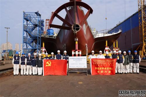 2025年12月22日,大連中遠海運重工為中遠海運發展建造的 80000 噸多用途糧食運輸船3 號船N1259輪完成上船臺節點。駐場船東代表、船級社代表與船廠項目組成員共同見證這一重要建造節點。