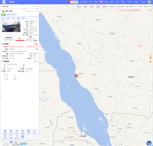 航運界網消息,胡塞武裝聲稱使用“2架無人機和1枚導彈”成功襲擊了地中海航運旗下集裝箱船“MSC Aby”輪,事實上,AIS數據顯示該輪已經抵達吉達港。