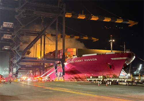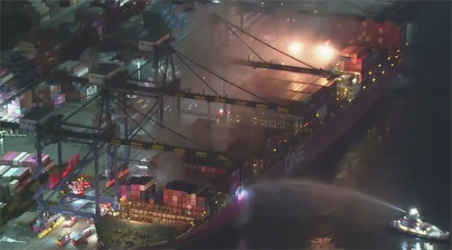 事發(fā)后,洛杉磯港表示,包括洛杉磯消防局、長(zhǎng)灘消防局、洛杉磯港口警察和美國(guó)海岸警衛(wèi)隊(duì)正在對(duì)“One Henry Hudson”輪甲板下發(fā)生的火災(zāi)做出響應(yīng)。已在船只周圍設(shè)立水域安全區(qū),并因煙霧和能見度問題封閉了47號(hào)州際公路。目前尚未收到人員傷亡報(bào)告,所有船員均已撤離。港口的七個(gè)集裝箱碼頭中有四個(gè)已經(jīng)暫停運(yùn)營(yíng)。
