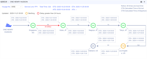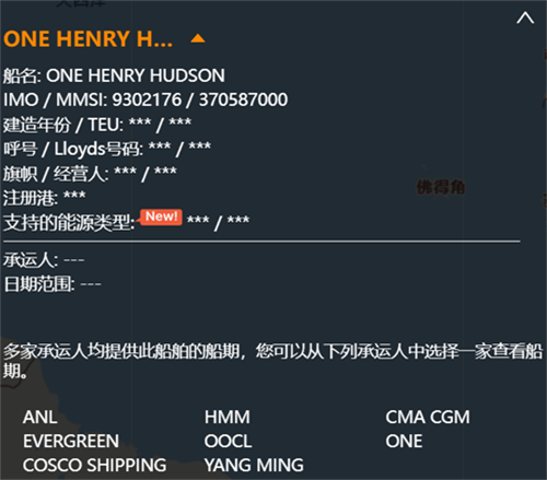 大船期數(shù)據(jù)顯示,“One Henry Hudson”輪此次承載的并非ONE一家,其共艙班輪公司中還包括達(dá)飛、HMM、東方海外、中遠(yuǎn)海運(yùn)、長(zhǎng)榮海運(yùn)及陽明海運(yùn)。