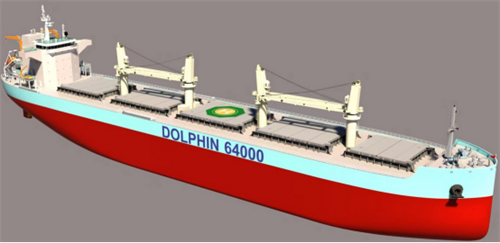 全球首艘DOLPHIN 64系列散貨船由中船澄西船舶修造有限公司于2013年交付,與傳統的57000載重噸散貨船相比,其艙容量增加約8%,載貨量增加11.6%左右,配置有4臺30噸液壓克令吊,實現了貨物裝卸的高效與快捷。上海船舶研究設計院官網顯示,截至2024年4月,DOLPHIN 64系列散貨船在多個船廠已生效訂單120余艘。