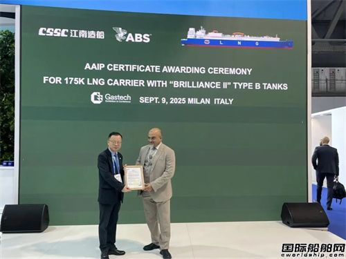 9月9日,中國船舶集團江南造船在意大利米蘭舉行的“2025氣體技術展(Gastech)”上正式發布全球首型搭載“BrilliancE® II”圍護系統超大型175000立方米LNG運輸船型方案,這標志著江南造船在LNG運輸船型研發領域取得了突破性成果,進一步為LNG的大規模海上運輸提供了一種全新的中國解決方案。
