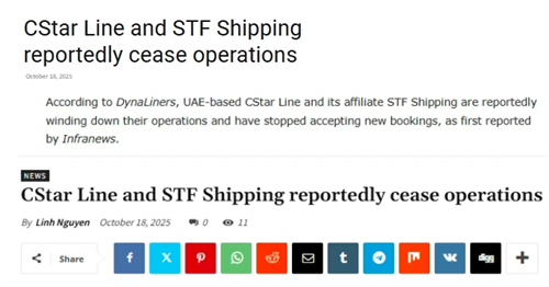 據多家媒體報道,總部位于阿聯酋的集運企業CStar Line及旗下集運公司STF Shipping,正計劃結束業務,并已停止訂艙。